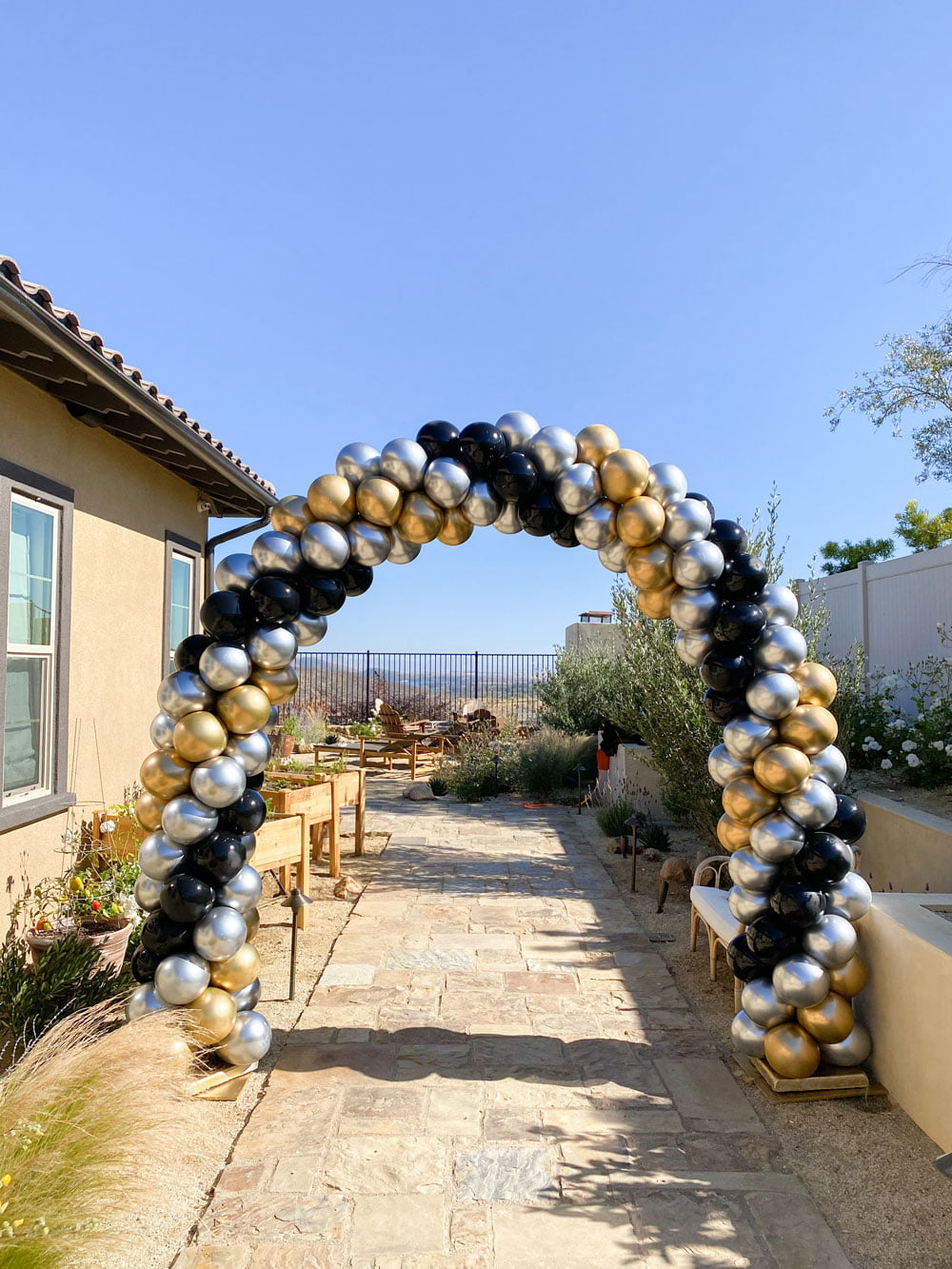 This arch can be customized to any theme or event. Numerous add ons available. Made using various-sized latex balloons.